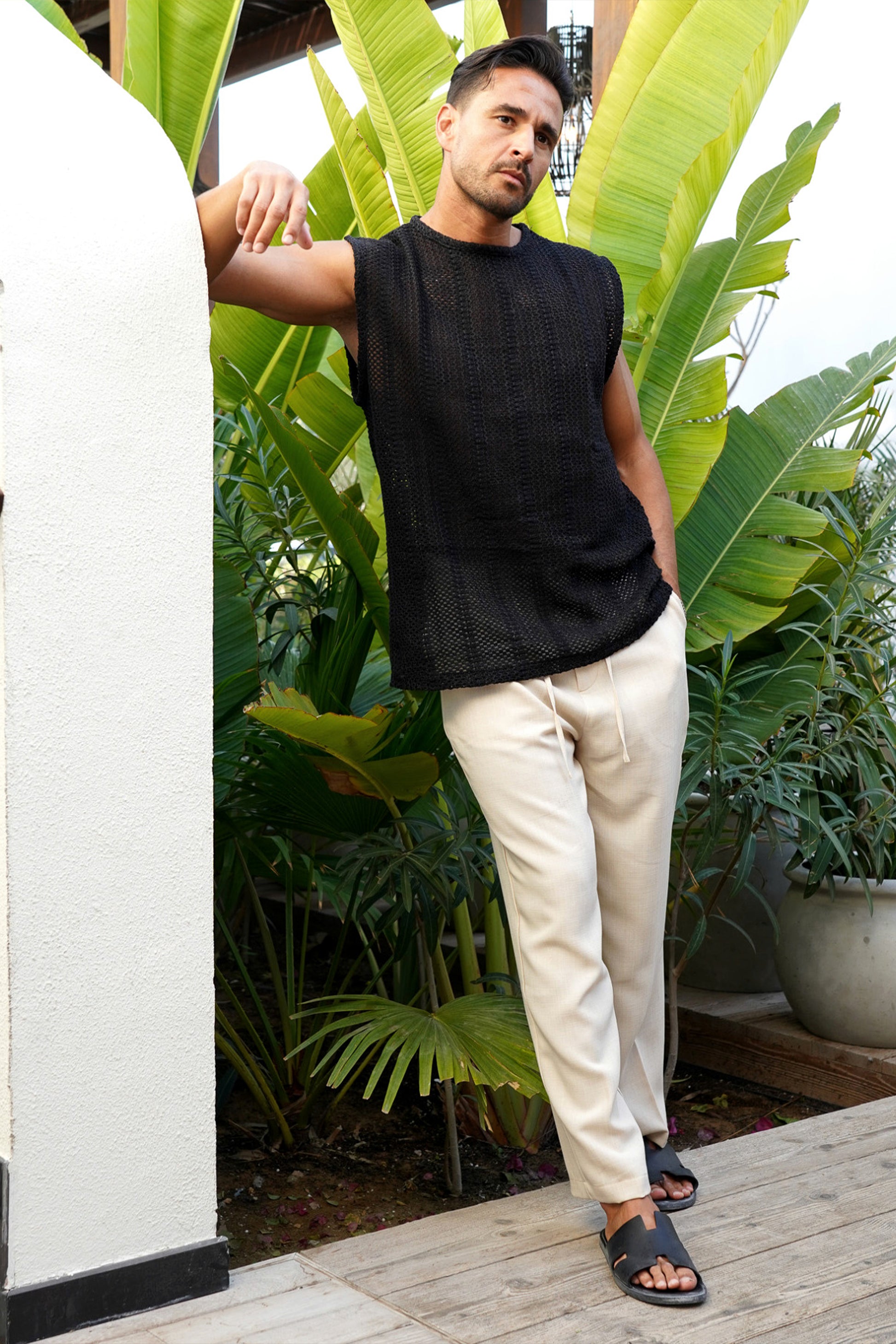 The Terra Tank Top is your go to piece for Dubai heat. Crafted with a soft crochet inspired texture, this sleeveless tank feels light, breathable, and effortless. Terra means earth and represents natural textures, warm tones, and grounded summer energy. The relaxed fit makes it perfect for layering or wearing on its own during long summer days and warm nights.